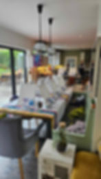 In House Parties we can host around a Dinning room table. Outside of Milton Keynes we do charge mileage for our artist travel expenses!